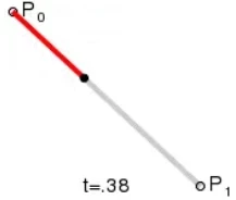 很显然,运动点 Pt 坐标可以这么计算:Pt = P0 + (P1 - P0)t = (1 - t)P0 + tP1