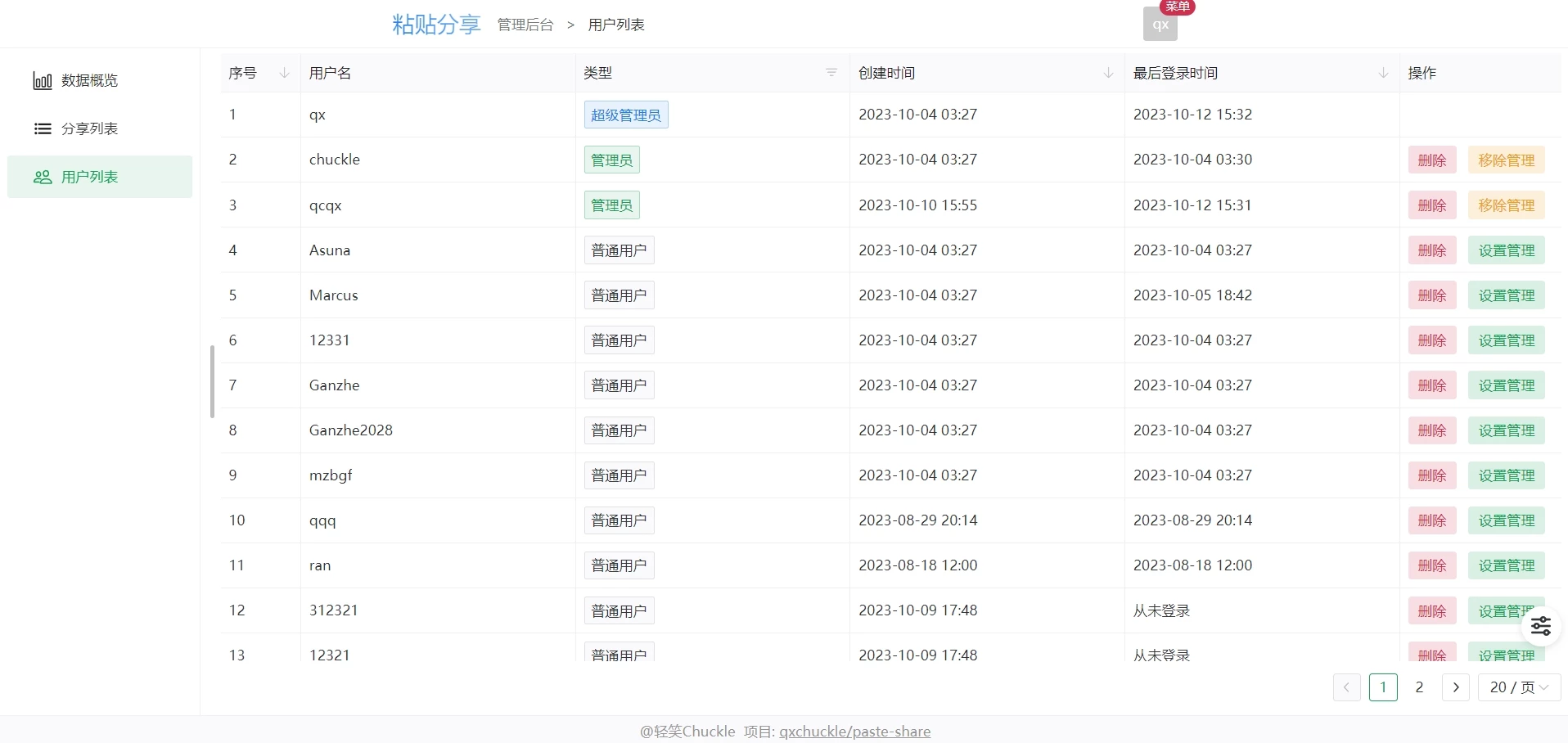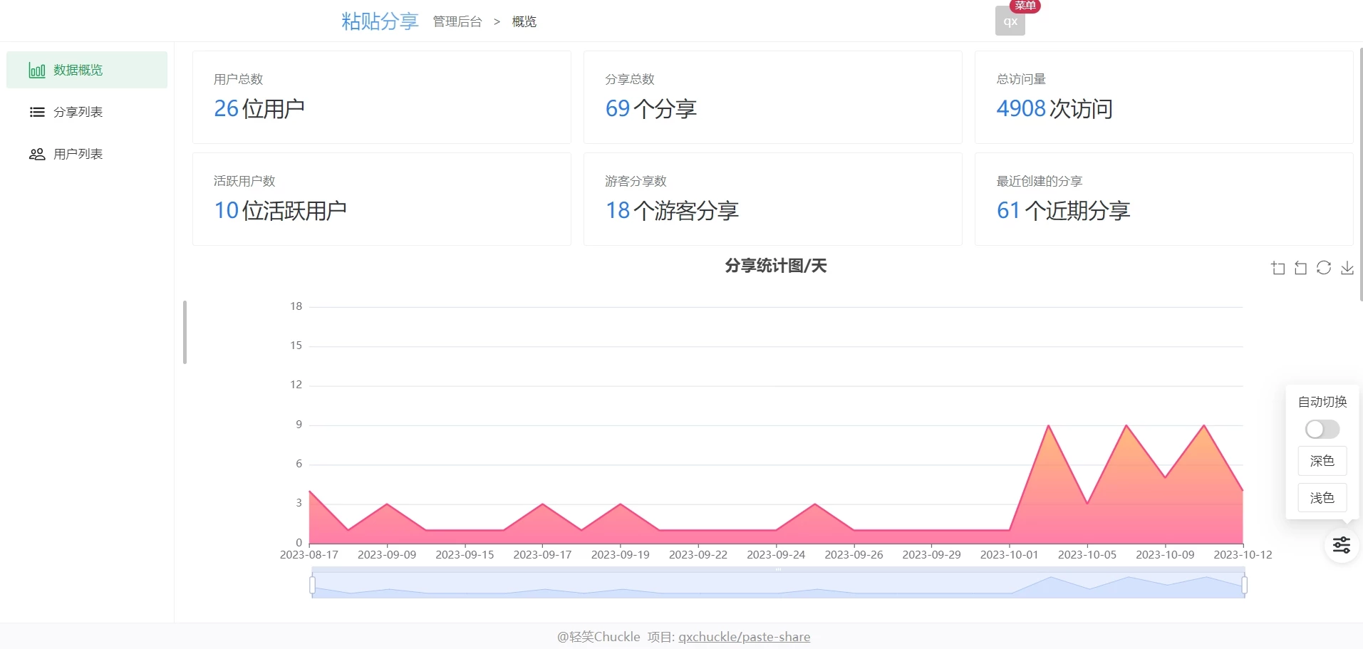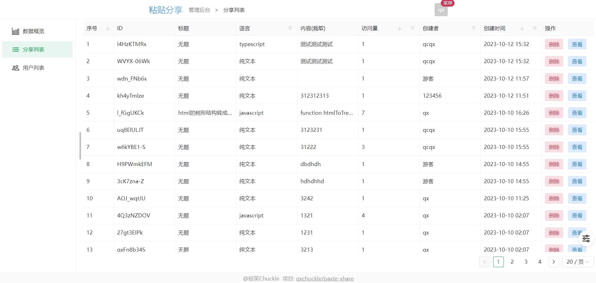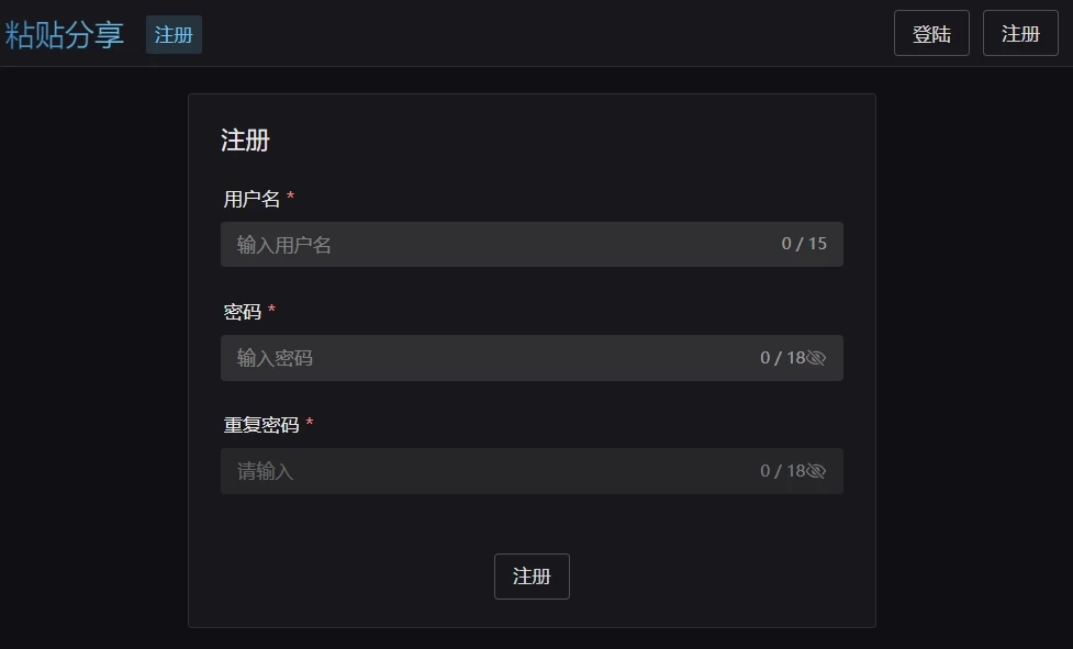 - 游客也能粘贴分享内容,注册登录后能查看自己所分享的所有内容