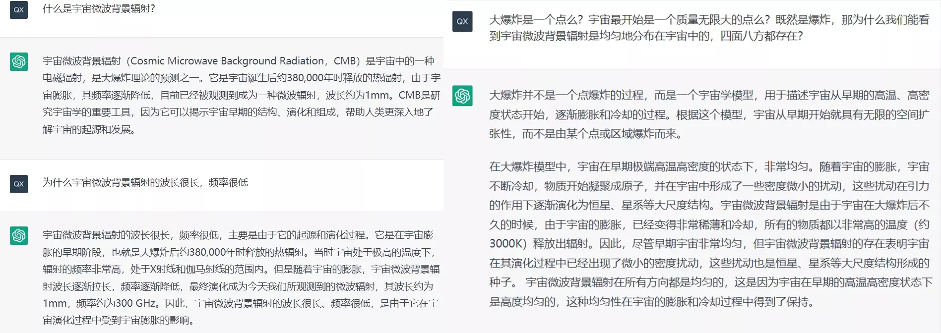 再来点物理方面的,就问问它宇宙微波背景辐射吧。