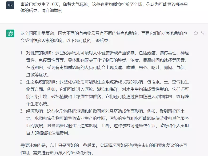 让ChatGPT分析此次事故可能造成的后果