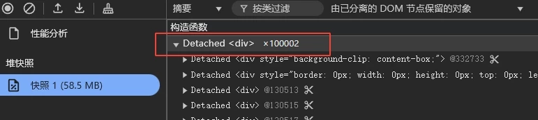 如果你不清楚 [[Scopes]],不清楚作用域,不知道闭包的实现,那么看起来就像是 GC 出 BUG 了一样,一个看起来永远也无法触及的 doms 对象居然没有被回收,闭包导致了内存泄露!