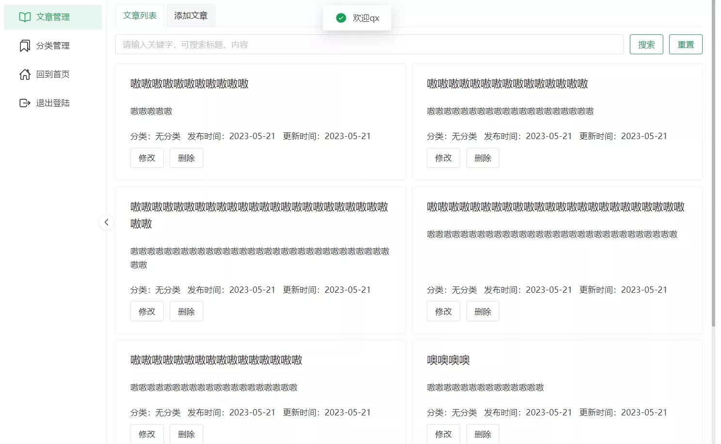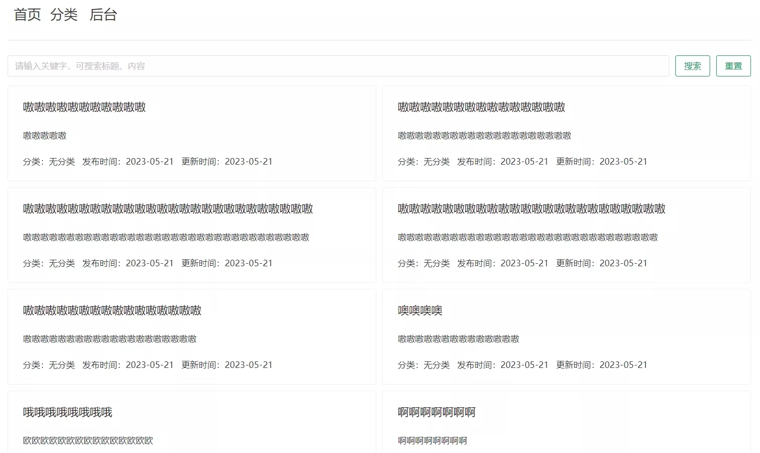 获取文章时通过携带的query参数不同,可以实现分页查询、查询指定分类的文章、标题和内容关键词搜索等