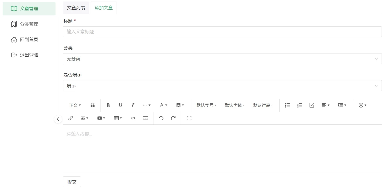 - 完整的管理后台,文章管理、富文本编辑、分类管理