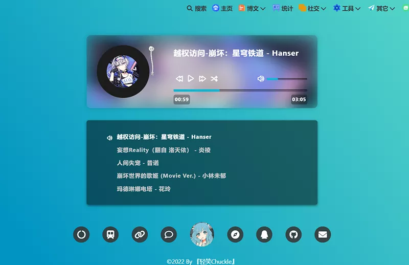 没有音乐页面怎么行,花里胡哨的都安排上,本来想摆烂直接上aplayer,但考虑到网站速度以及aplayer的稳定性(和卜算子日常歇菜),还是弄个音乐播放器放自己本地的音乐好,又快又稳定。